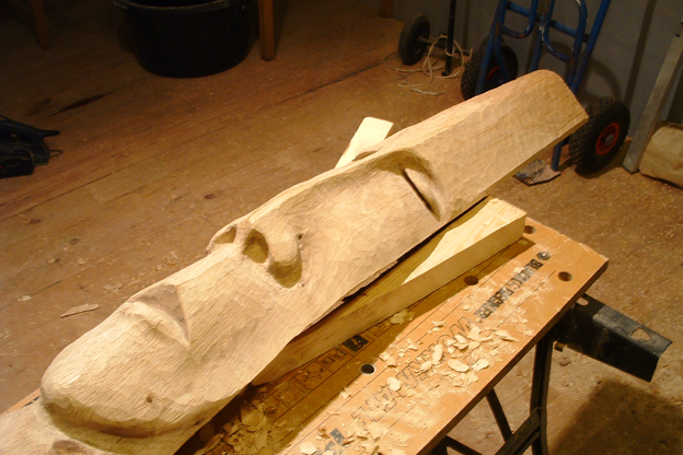 Af Lea Grav ThomsenSøren Cip Nielsen er en kunstner, der er vokset frem af et liv, hvor hver livsfase har mejslet sit spor ind i hans udtryk, fra det intense, provokende og humoristiske udtryk, som kan ses i maskearbejdet, til det eksperimenterende og fritænkende udtryk, som ses i de hele, ofte nøgne, menneskelige figurer i træ - eller eksistenser, som hver i sær har deres egen fortælling ud fra hver deres fremtoning. Legen med det upolerede, det spontane i opstillingen leder tanken frem mod en tilfældighed, et livsvilkår, eller et øjebliksbillede, der går bag om forhænget og får os til at tænke med skulpturen.